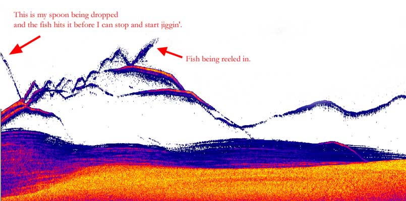 This shows a day when the stripers were so active, that the stripers were hitting my spoons/jigs while I was dropping them and before I could engage the reel. ...wish it was like that everyday.